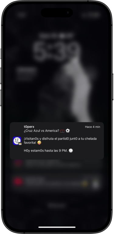 Notificaciones directamente en los teléfonos de tus clientes con el logo y nombre de tu marca. Como si tuvieran una app de tu negocio en sus teléfonos.
